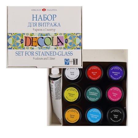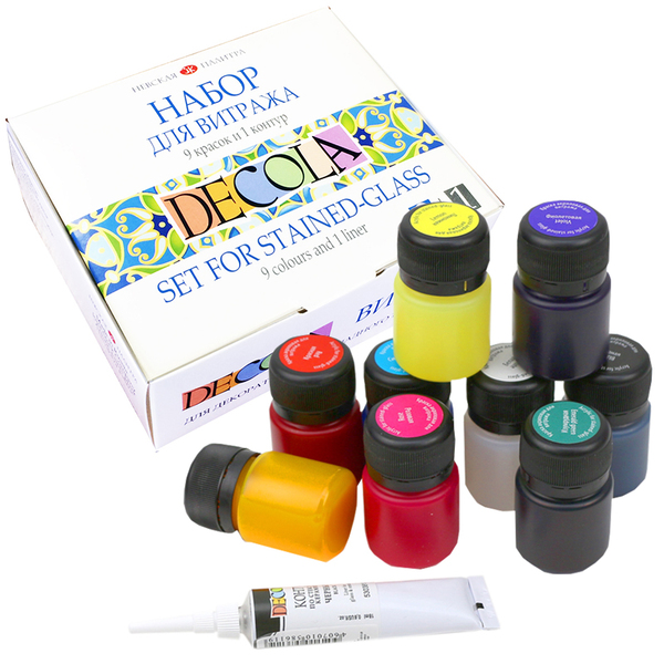 These Decola paints are water-based acrylic paints for glass and ceramics with transparent look. All paints are transparent except for white.