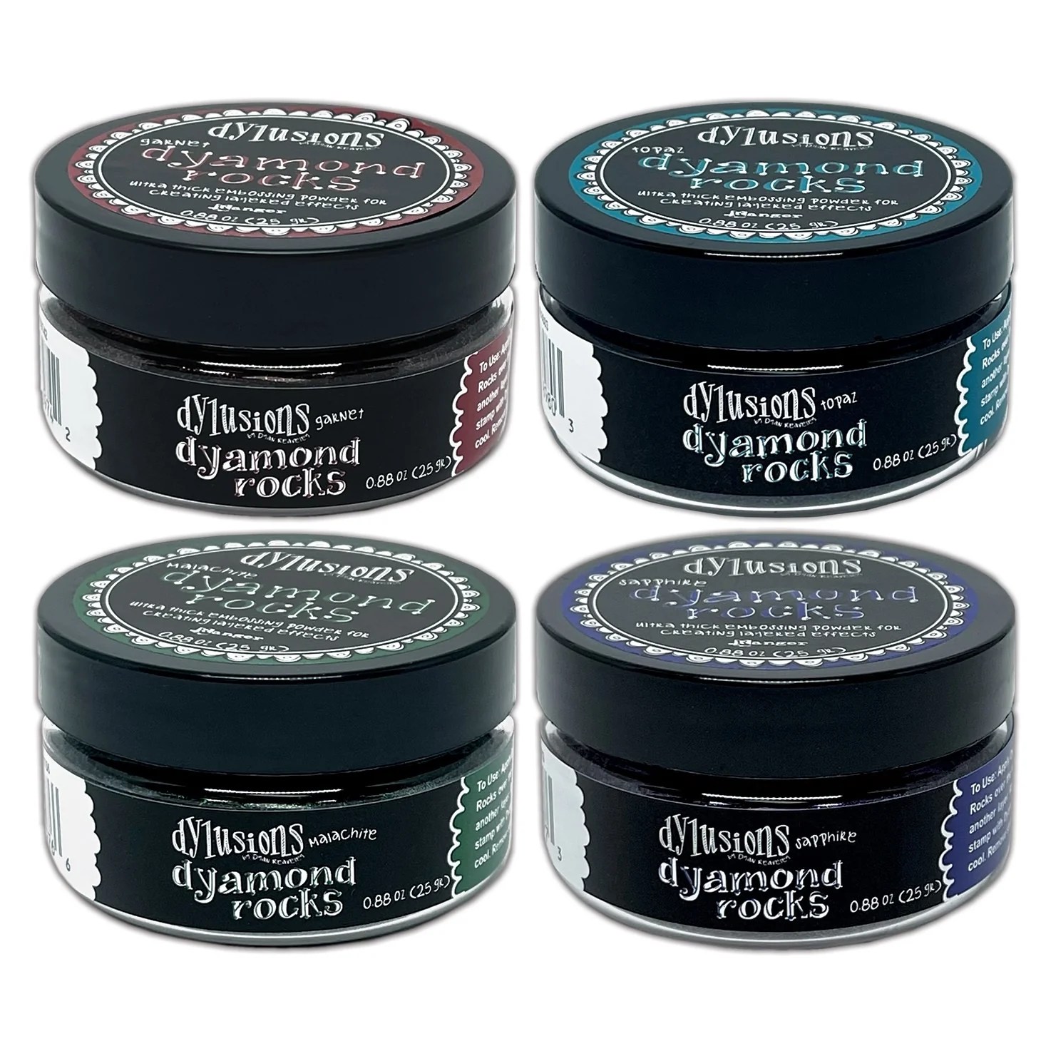 Create rich, layered effects with Dylusions Dyamond Rocks—an ultra-thick embossing powder designed to add color, dimension, and texture to your art journaling, mixed media, and paper craft projects.
