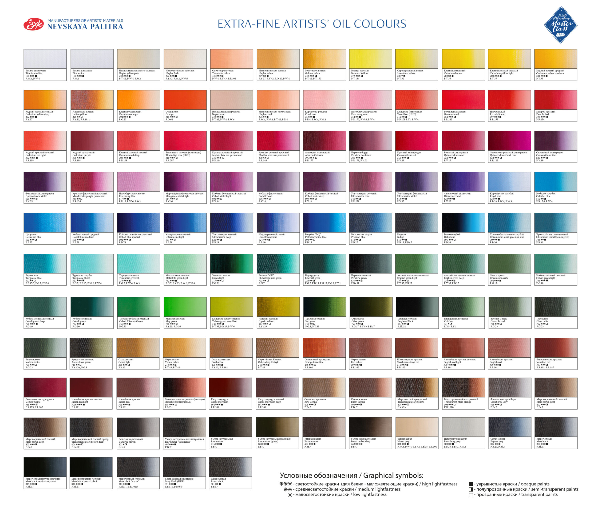 MasterClass artist oil paints by Nevskaya Palitra are made of high-quality pigments and binders based on specially treated linseed oil.